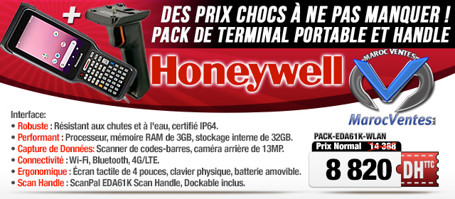 Honeywell EDA61K-ONUB3- PACK-EDA61K-WLAN Terminal MobileHoneywell EDA61K-0NUB34PGRK - PACK-EDA61K-WLAN Terminal Mobile EDA61K Clavier Numérique WLAN 3G 32G