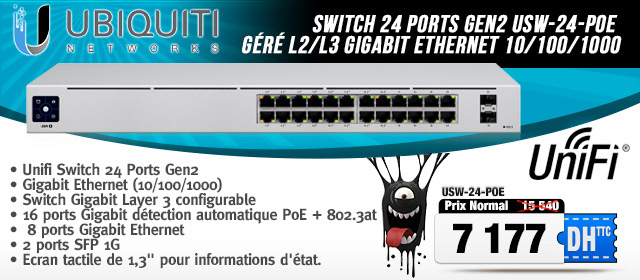 Ubiquiti Unifi Switch 24 Ports Pro Gen2 USW-PRO-24-POE Géré L3 Gigabit Ethernet (10/100/1000)IPTV Maroc