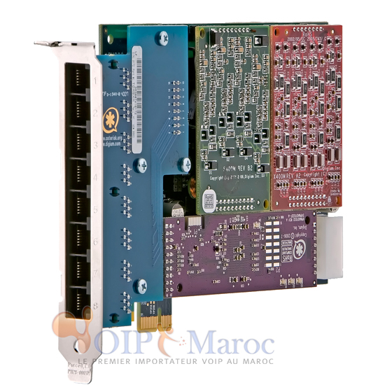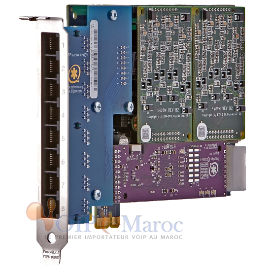 Digium AEX800 - Carte analogique modulaire à 8 ports FXO/FXS ,PCI-Express x1, avec option d'anti-echo