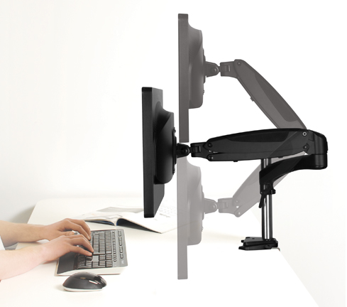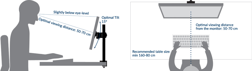 Nos bras de moniteur sont réglables en hauteur et vous permettent d'ajuster facilement votre écran au réglage d'écran idéal et ergonomique. Le haut de l'écran doit être placé juste en dessous du niveau des yeux.