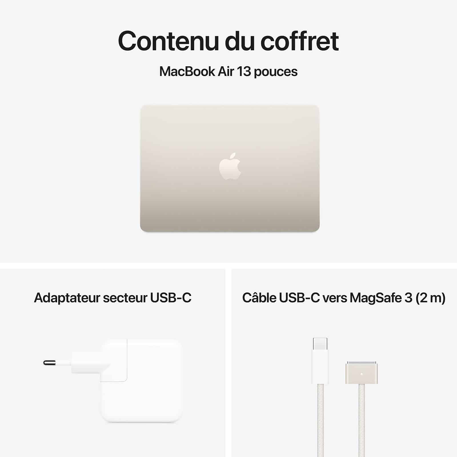 Apple MC6A4 - MacBook Air 13 pouces (2025) puce Apple M4 24 Go SSD 512 Go STARLIGHT