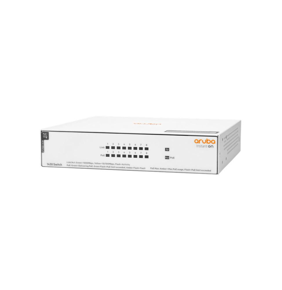 • Switch Aruba Instant On 1430 8G Class4 PoE 64W Non-Géré L2 R8R46A
