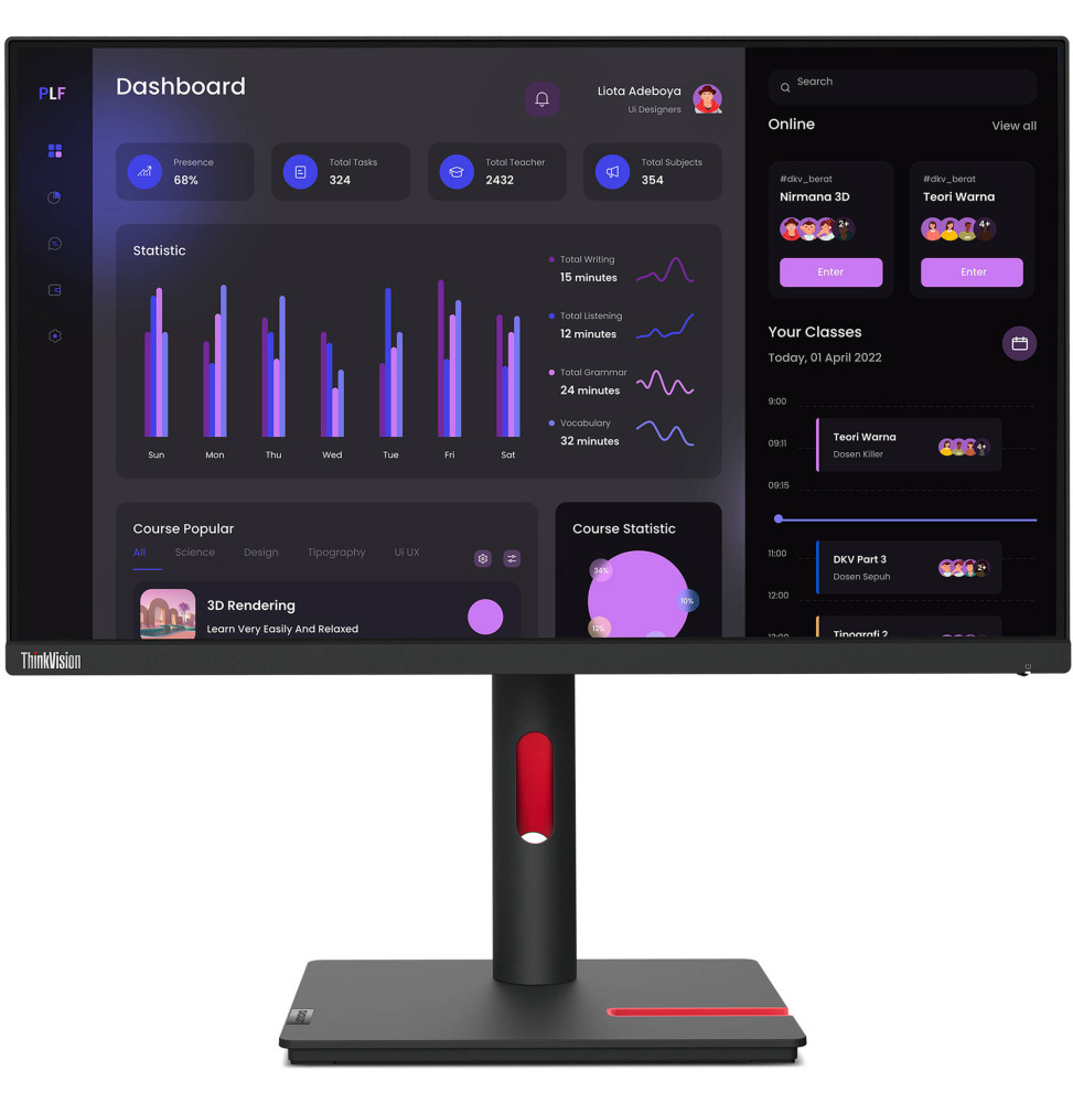 Lenovo 63CFMATXEU - Moniteur LENOVO ThinkVision T24i-30 23,8 pouces (60,5 cm) HDMI, VGA, DisplayPort 12M