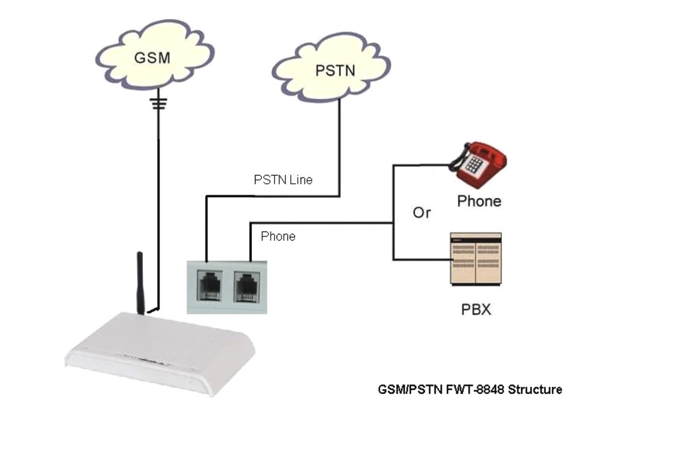 oem FWT-8848 - Passerelle analogique GSM a FXO (RTC) Compatible avec carte SIM Staandard*