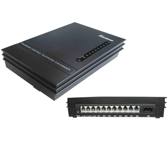 - Small Office / Home Office PABX. Mini Fashion Design . 3 Line - 8 Extension Direct Access when Power Failure Incoming / Outgoing Call Transfer Call All Extensions / Intercom Music on Hold Outgoing Message Recording (OGM) / Operator Mesin Penjawab - No memory loss while power off - Power failure transfer - Built in short-circuit protection (thunder strike resistant) - Auto-attendant (DISA) - On-hold music function - Remote programming - Caller ID - Flexible coding - Operator setting - Control calls duration - Call forwarding - Call pickup - Three way conference - Call restriction function - C.O. line reservation - External line group - Multiple dial-out mode