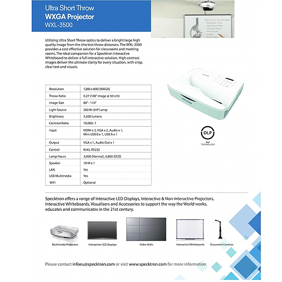 Specktron WXL-4000 - VIDEOPROJECTEUR ULTRA-COURTE FOCALE avec Support Mural