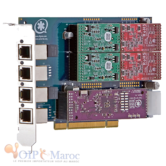 Digium TDM410 - Carte analogique modulaire à 4 ports FXO/FXS ,PCI avec option Anti-Echo