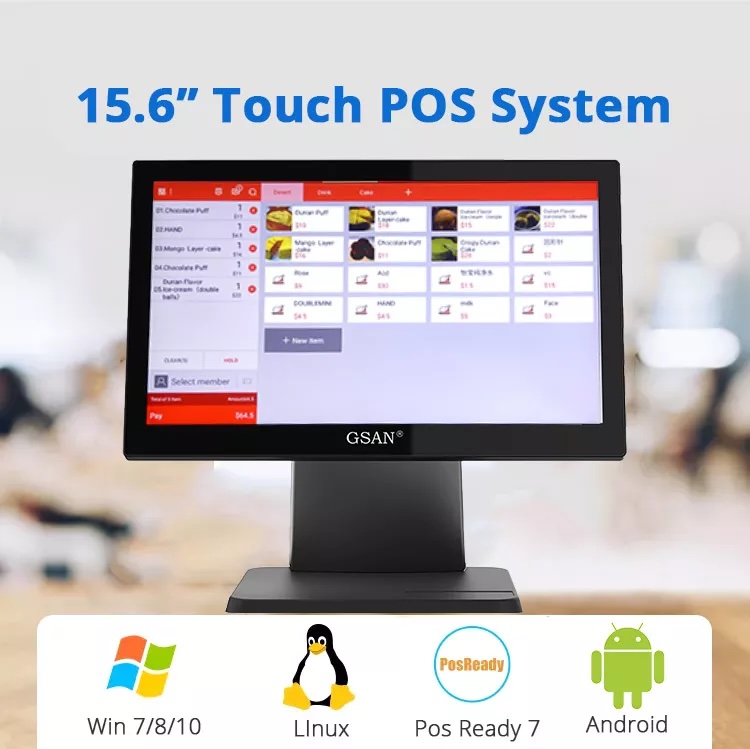 GSAN GS-T3 VFD-KEY - Terminal Point de Vente GSUN Intel Core I5-3th Ecran Tactile 15,6" 128 Go SSD 8Go Win10 avec Lecteur Dallas