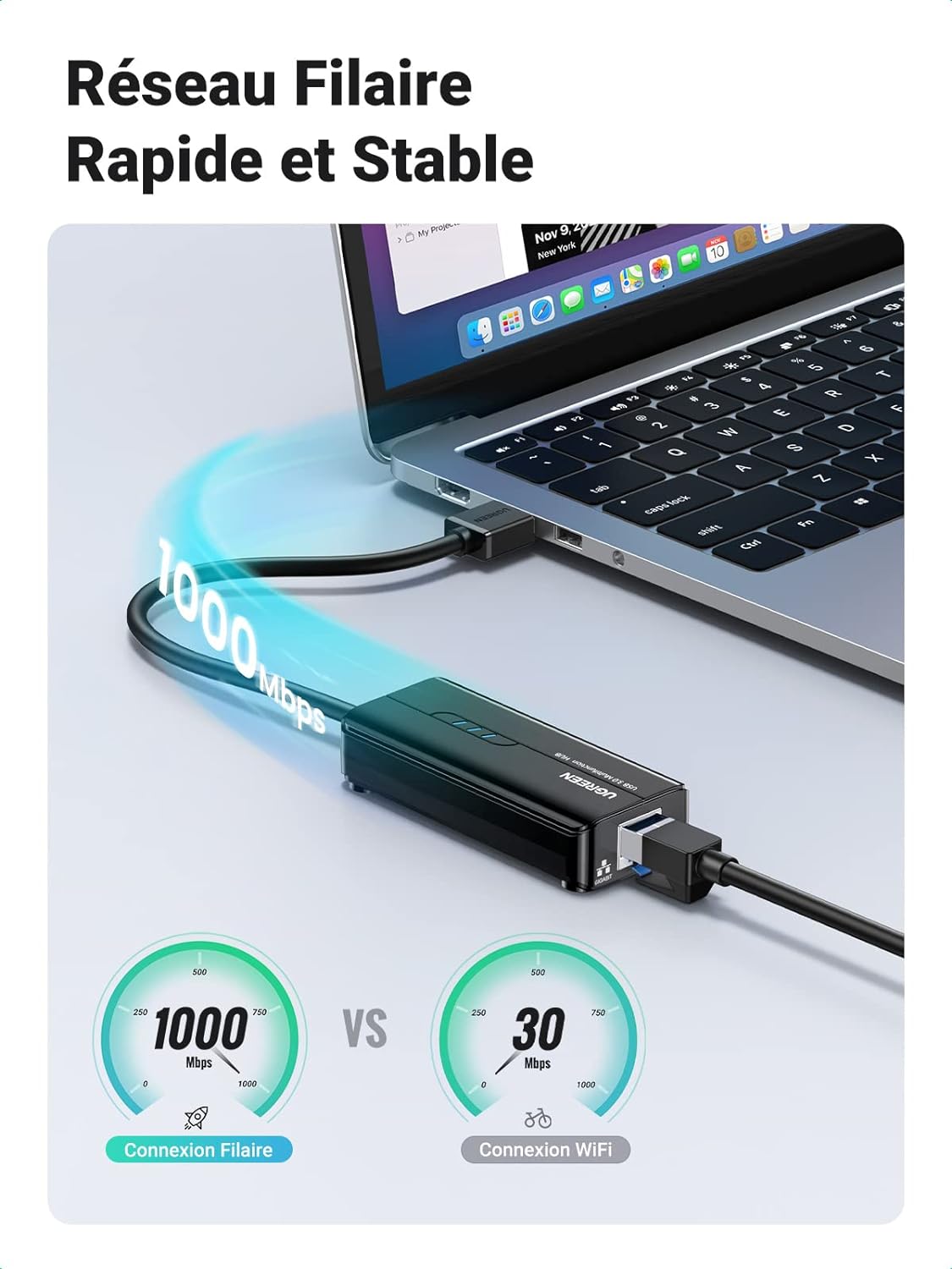 Prise en charge maximale de 1 000 Mbps :