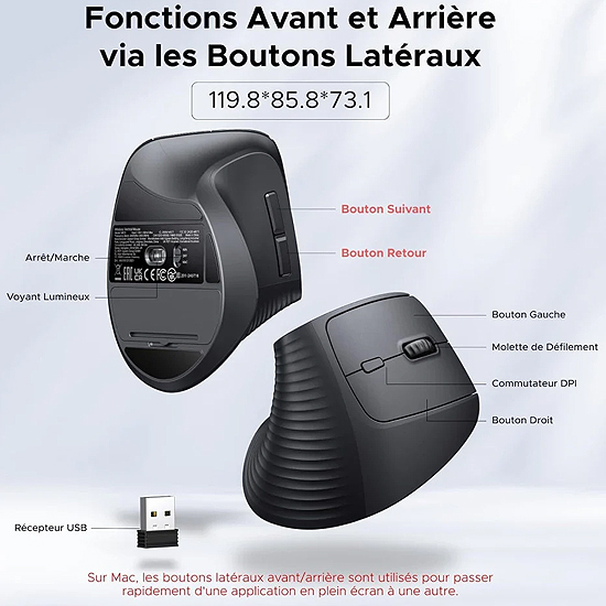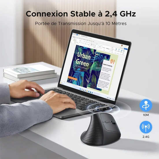 Ugreen 55916 - Souris Sans Fil Verticale M571 Noir 2,4 GHz