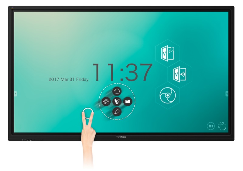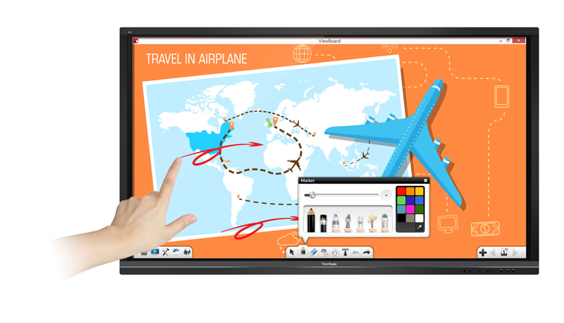 La fonction tactile à deux doigts active le stylet flottant du ViewBoard qui permet une annotation facile sur tout, que ce soient des fichiers PowerPoint, des documents texte, des fichiers USB, une mémoire interne ou même des images issues d'une source connectée.