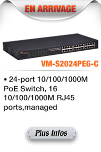 VM-S1024PEG-C 24 ports 10/100 / 1000M Switch PoE fournit la connexion réseau sans coupure.Ne pas utiliser sur plus de 12 caméras.