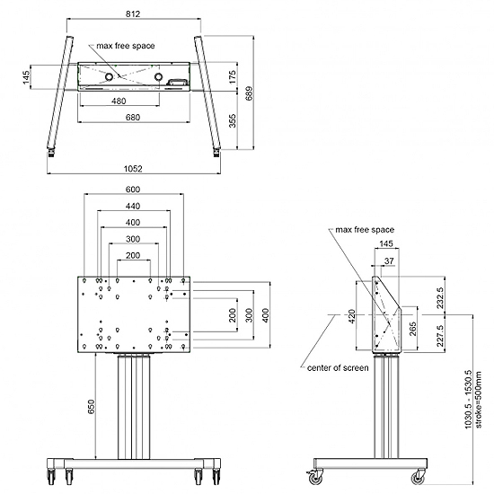 CHARIOT MOTORISÉ SUR ROUES POUR MONITEURS TAILLE ECRAN 86" POIDS MAXIMAL 100 kg