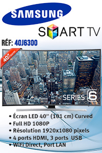 Téléviseur Samsung 43″ HD Smart TV Série 5 – Résolution 1366 x 768 – 1x USB – 2x HDMI – 1x Ethernet – Haut Parleur 10W – Wifi Direct – Tuner analogique – 1x entrée AV, 1x entrée composante (Y / Pb / Pr) – Processeur Quad Core – Game Mode – ConnectShare (USB 2.0) – Alimentation: AC100-240V 50/60Hz – Dimensions avec support: 737.4 x 465.4 x 150.5 mm