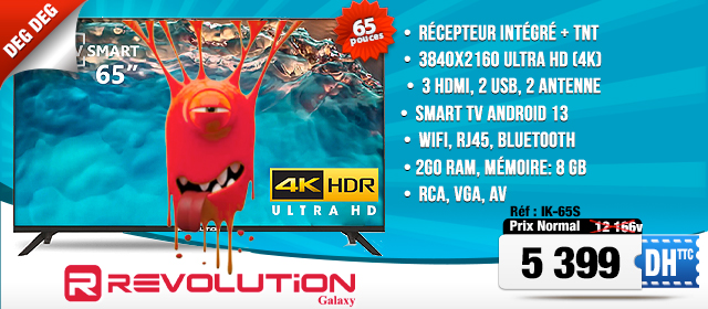 Téléviseur 65 pouce Révolution 5399 dh/ttc