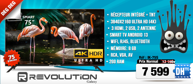 Les prix Harras Deg Deg 75" 7599 dh/ttc