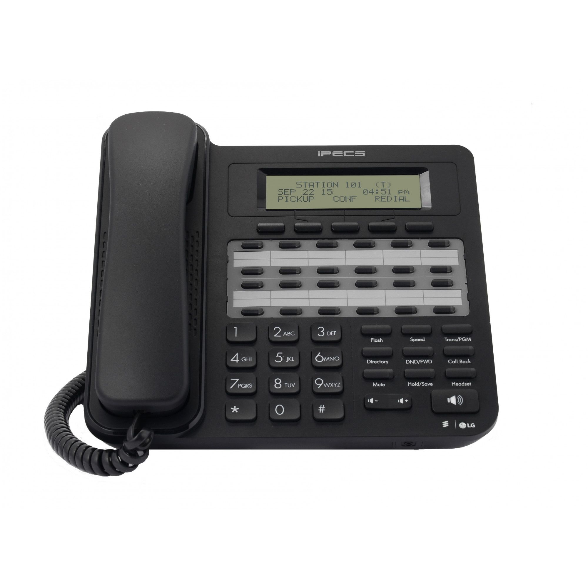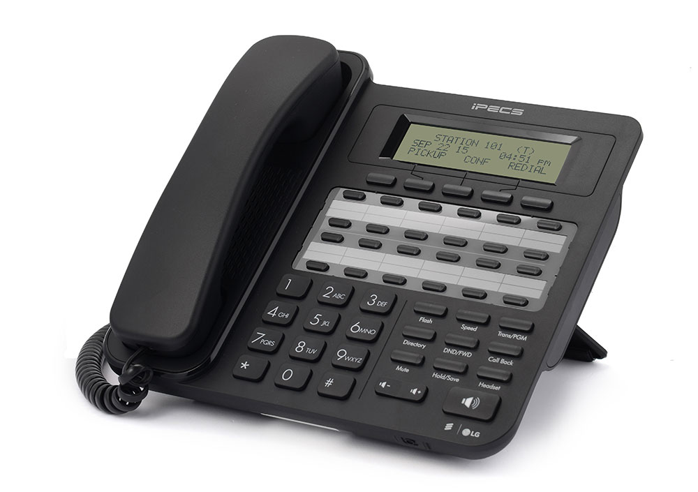 Numérique propriétaire Téléphone Ericsson LG LDP-9224D , 24 agrégations boutons programmables, des extensions ou des fonctions, écran LCD 3 lignes x 24 caractères, 11 boutons dédiés (haut - parleurs, Tenir, numérotation abrégée, transfert, le routage des appels, faire appeler, Volume, Muet, Flash, Répertoire, Sélection du casque), 3 boutons contextuels pour l’écran LCD et la prise casque. Permet la connexion de l'extension numérique à 48 boutons, LDP9248DSS.