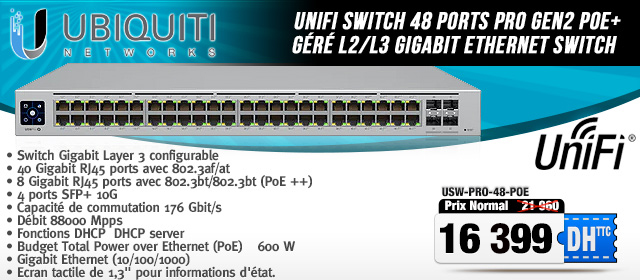 Ubiquiti UniFi Ubiquiti. Les meilleurs prix en Maroc! Distributeur des dispositifs réseau, des serveurs et des logiciels de la gamme complete de Ubiquiti a des prix imbattable.