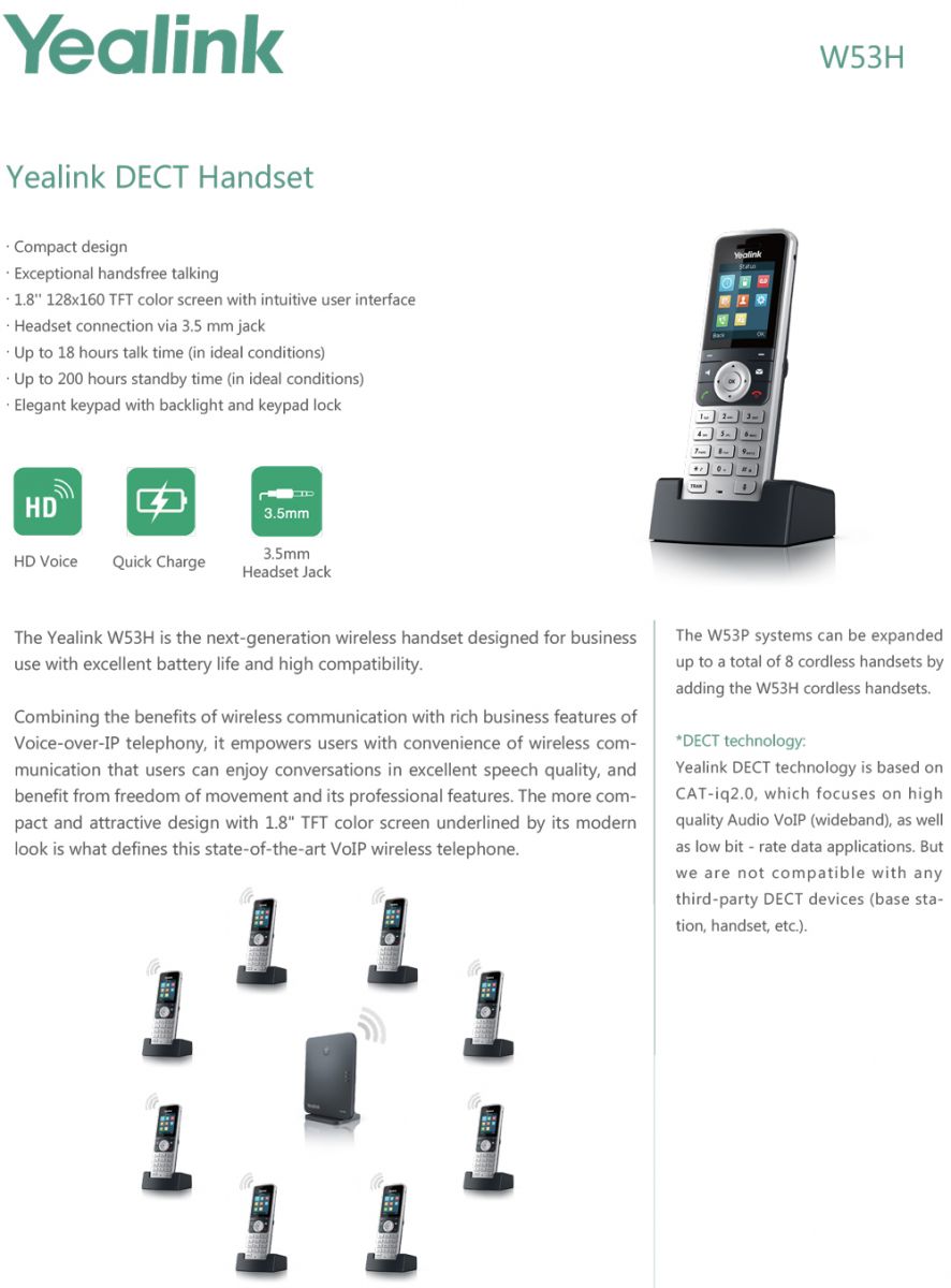 Yealink W53H - Téléphone DECT sans fil Écran couleur TFT